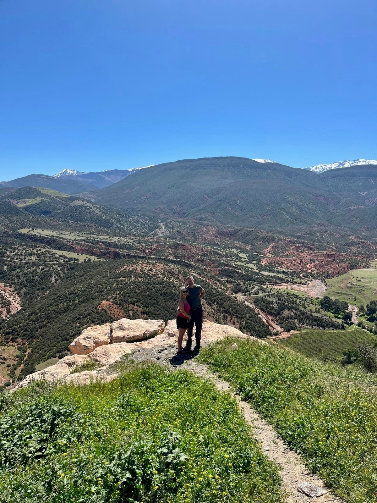 Our driver Mustafa arrived – a jolly chap. Didn't speak much English, but we conversed freely in a mix of franglais. Relaxed, chatty, always laughing, he found photo stops and a caffeine break en route during the 90-minute transfer to Imlil, in the valley of the Atlas Mountains, overshadowed by the enormous Mount Toubkal standing at 4,180m.
